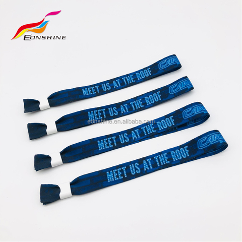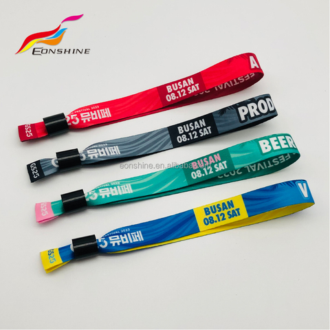 สายรัดข้อมือผ้าทอแบบสั่งทำได้สำหรับใช้ครั้งเดียวล็อคพลาสติกสำหรับงานเทศกาล
