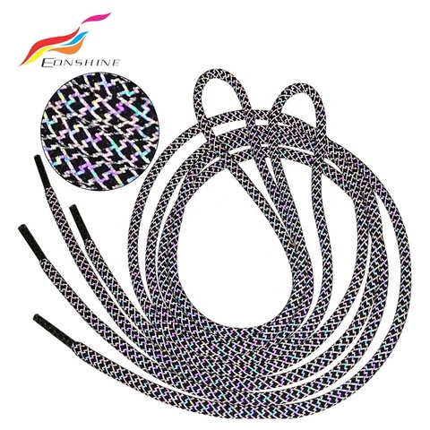 Destaque Segurança Colorido Running Shoe Lace Rope Round Reflective Shoelaces para Sneakers